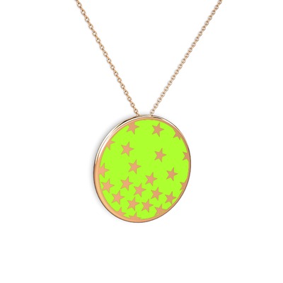 18 ayar rose altın kolye (Neon yeşil mineli, 40 cm gümüş rolo zincir)