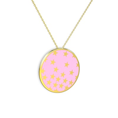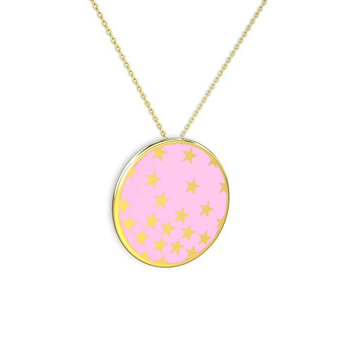 925 ayar altın kaplama gümüş kolye (Açık pembe mineli, 40 cm altın rolo zincir)