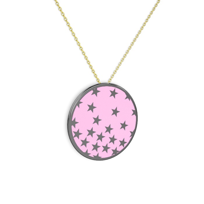 925 ayar siyah rodyum kaplama gümüş kolye (Açık pembe mineli, 40 cm altın rolo zincir)