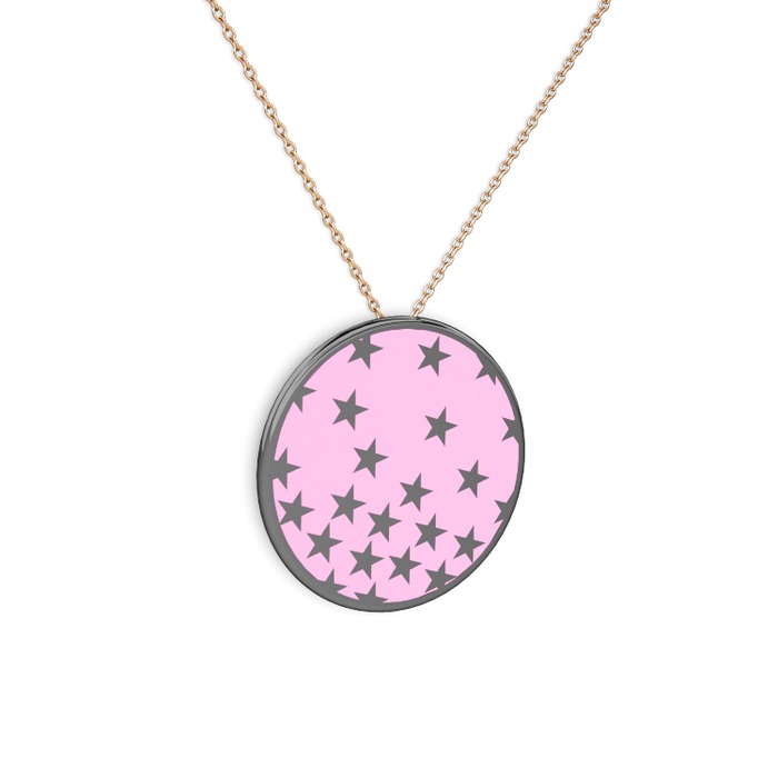 925 ayar siyah rodyum kaplama gümüş kolye (Açık pembe mineli, 40 cm gümüş rolo zincir)