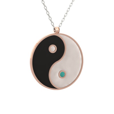 Mineli Yin Yang Kolye - 18 ayar rose altın kolye (Siyah mineli, 40 cm beyaz altın rolo zincir)