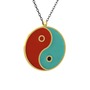 Mineli Yin Yang Kolye - 925 ayar altın kaplama gümüş kolye (Kırmızı mineli, 40 cm gümüş rolo zincir)