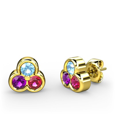 Akuamarin, ametist ve rodolit garnet 14 ayar altın küpe