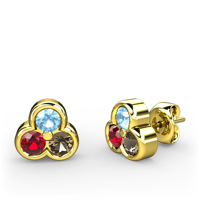 Akuamarin, garnet ve dumanlı kuvars 8 ayar altın küpe
