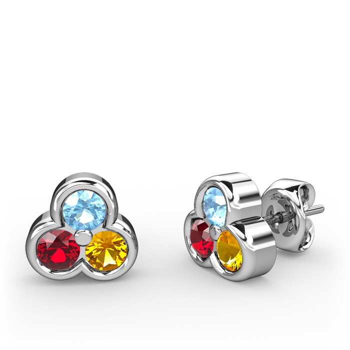 Akuamarin, garnet ve sitrin 925 ayar gümüş küpe