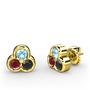 Akuamarin, kök yakut ve siyah zirkon 8 ayar altın küpe