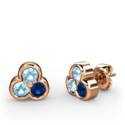 Akuamarin ve lab safir 18 ayar rose altın küpe