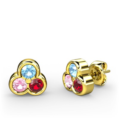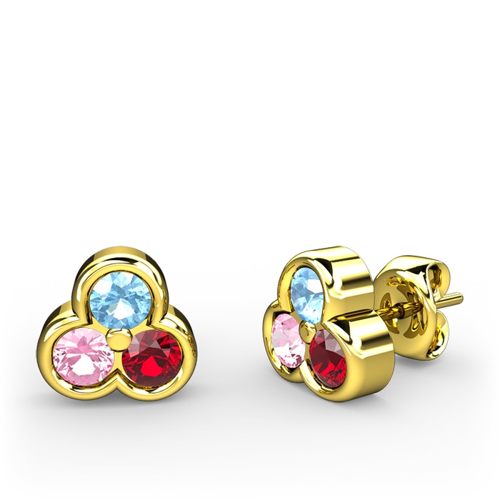 Akuamarin, pembe kuvars ve garnet 18 ayar altın küpe