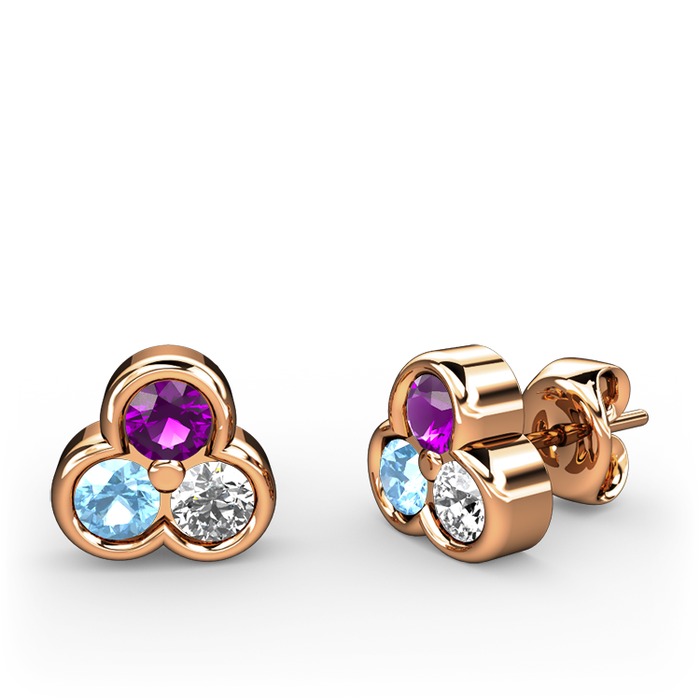 Ametist, akuamarin ve swarovski 18 ayar rose altın küpe