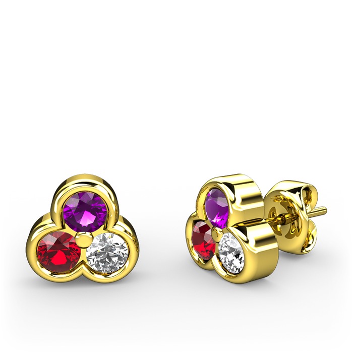 Ametist, garnet ve beyaz zirkon 8 ayar altın küpe