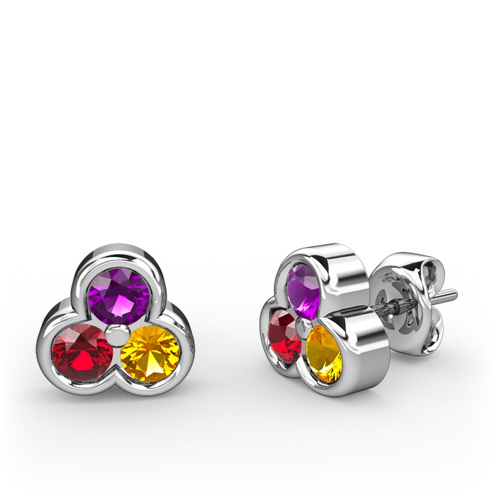 Ametist, garnet ve sitrin 925 ayar gümüş küpe