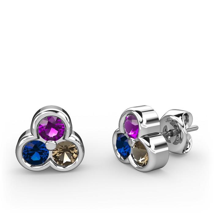 Ametist, lab safir ve dumanlı kuvars 8 ayar beyaz altın küpe