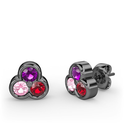 Ametist, pembe kuvars ve garnet 925 ayar siyah rodyum kaplama gümüş küpe