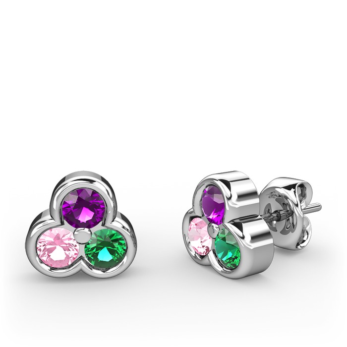 Ametist, pembe kuvars ve yeşil kuvars 8 ayar beyaz altın küpe