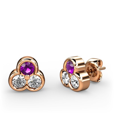 Ametist, pırlanta ve beyaz zirkon 18 ayar rose altın küpe (0.22 karat)