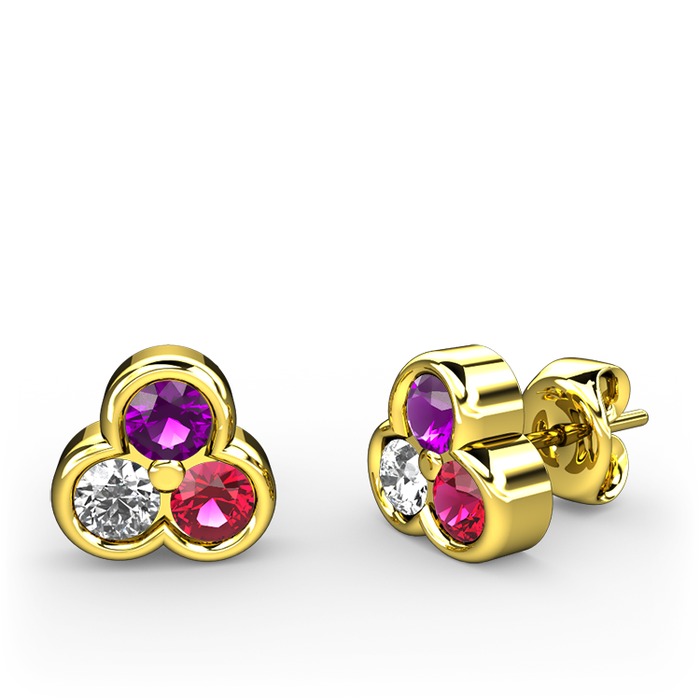 Ametist, pırlanta ve rodolit garnet 8 ayar altın küpe (0.22 karat)