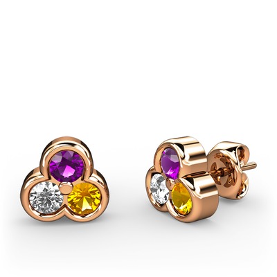 Ametist, pırlanta ve sitrin 14 ayar rose altın küpe (0.22 karat)