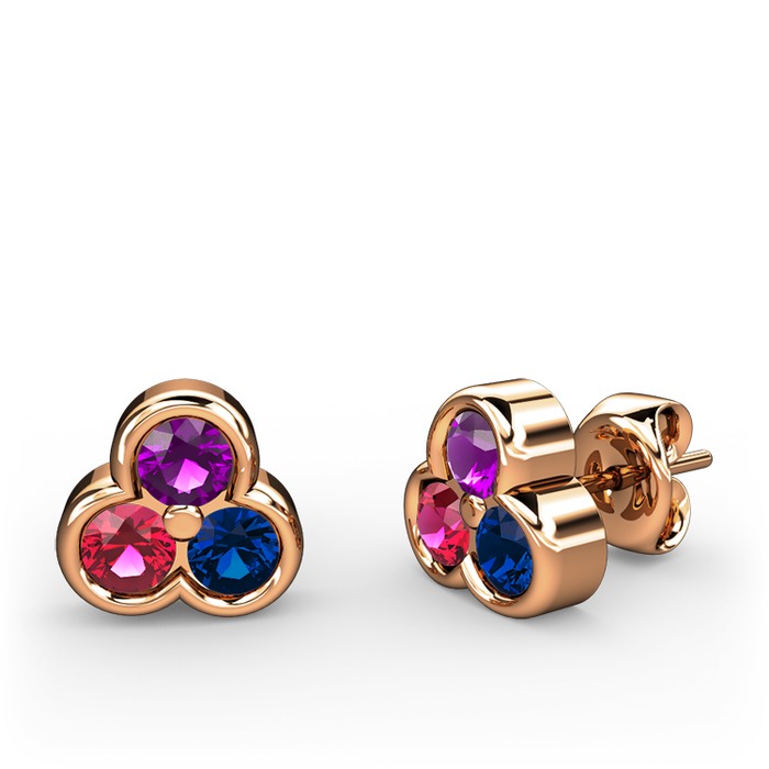 Ametist, rodolit garnet ve lab safir 8 ayar rose altın küpe
