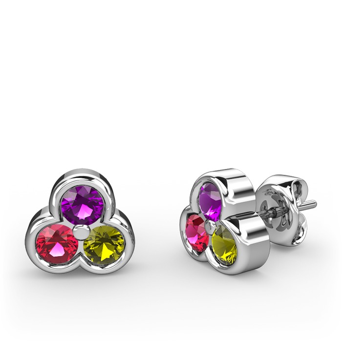 Ametist, rodolit garnet ve peridot 18 ayar beyaz altın küpe