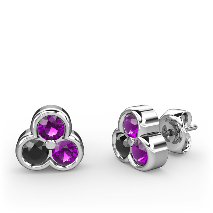 Ametist ve siyah zirkon 14 ayar beyaz altın küpe