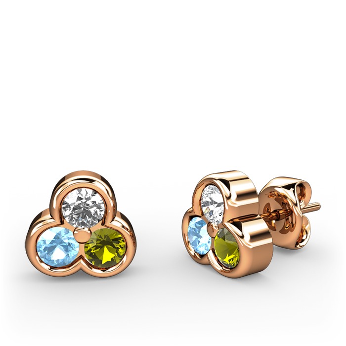 Beyaz zirkon, akuamarin ve peridot 18 ayar rose altın küpe