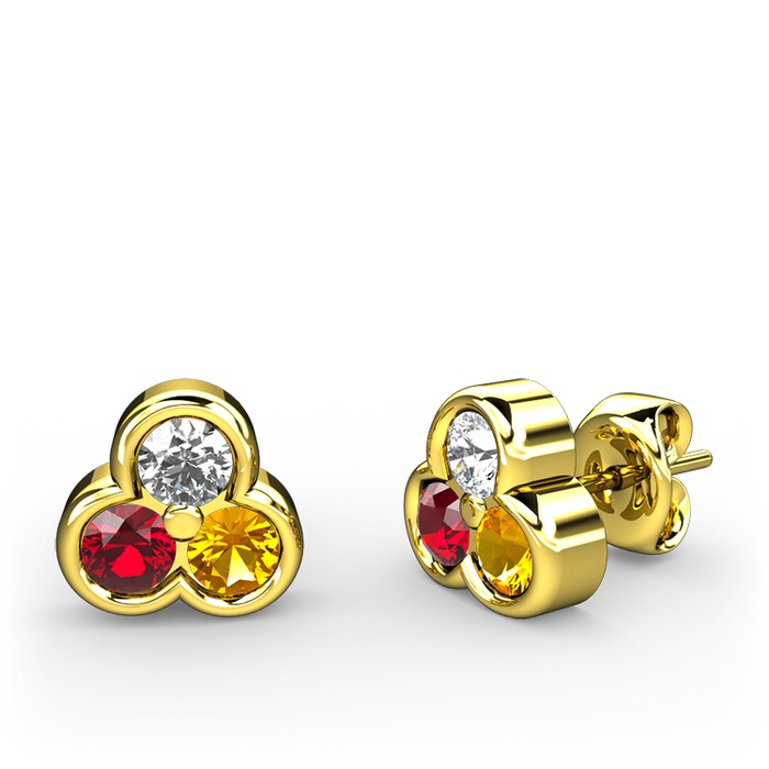 Beyaz zirkon, garnet ve sitrin 925 ayar altın kaplama gümüş küpe