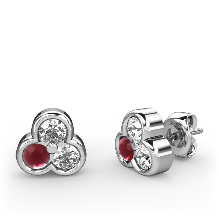Beyaz zirkon, kök yakut ve pırlanta 18 ayar beyaz altın küpe (0.22 karat)