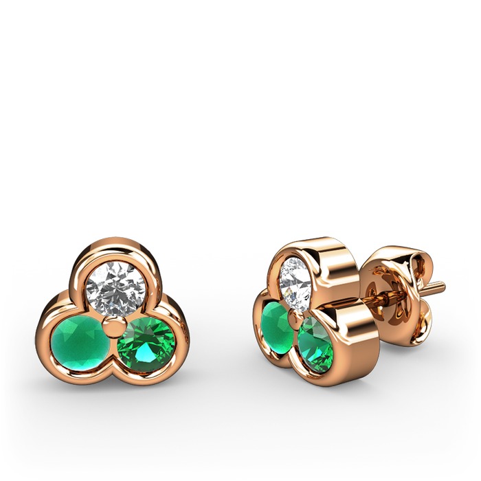 Beyaz zirkon, kök zümrüt ve yeşil kuvars 925 ayar rose altın kaplama gümüş küpe