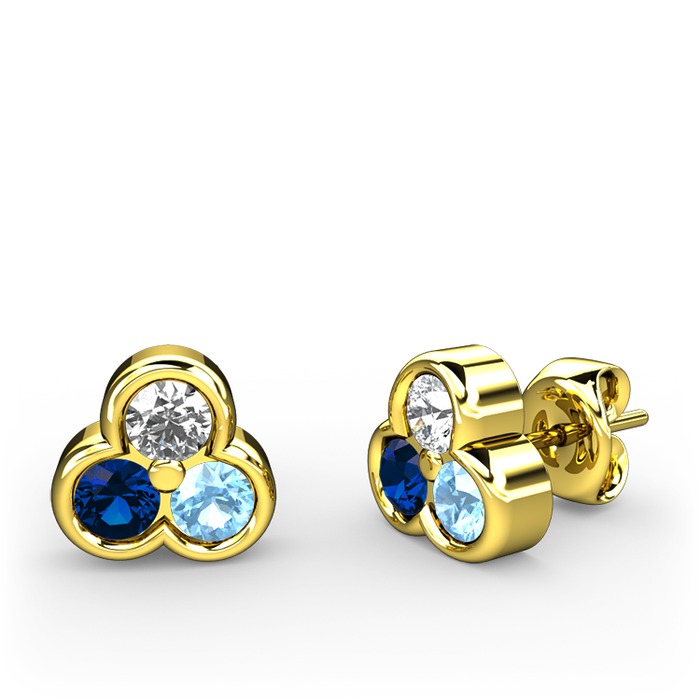 Beyaz zirkon, lab safir ve akuamarin 14 ayar altın küpe