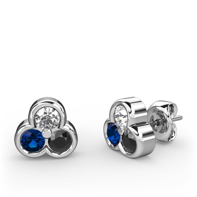 Beyaz zirkon, lab safir ve siyah zirkon 18 ayar beyaz altın küpe