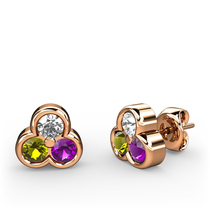 Beyaz zirkon, peridot ve ametist 925 ayar rose altın kaplama gümüş küpe