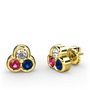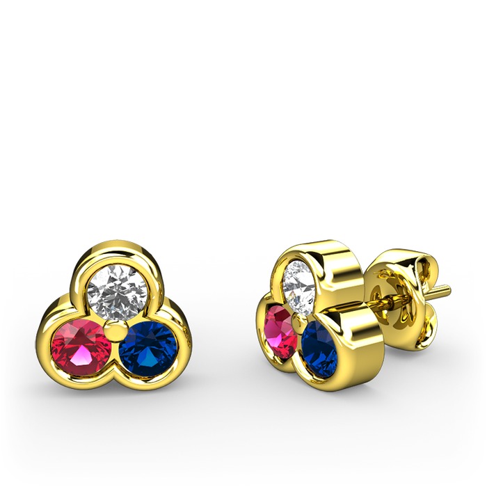 Beyaz zirkon, rodolit garnet ve lab safir 14 ayar altın küpe