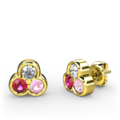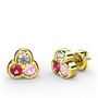 Beyaz zirkon, rodolit garnet ve pembe kuvars 14 ayar altın küpe