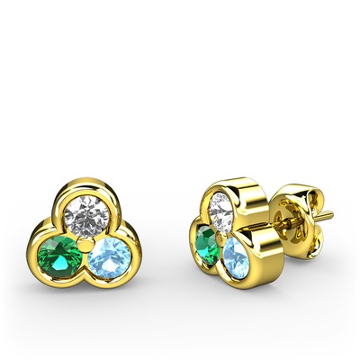 Beyaz zirkon, yeşil kuvars ve akuamarin 18 ayar altın küpe
