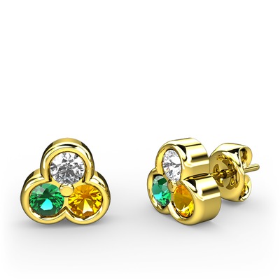 Beyaz zirkon, yeşil kuvars ve sitrin 18 ayar altın küpe