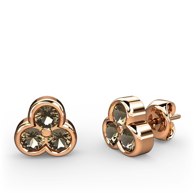 Dumanlı kuvars 18 ayar rose altın küpe
