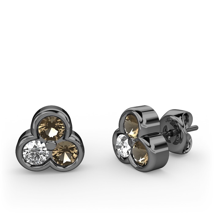 Dumanlı kuvars ve beyaz zirkon 925 ayar siyah rodyum kaplama gümüş küpe