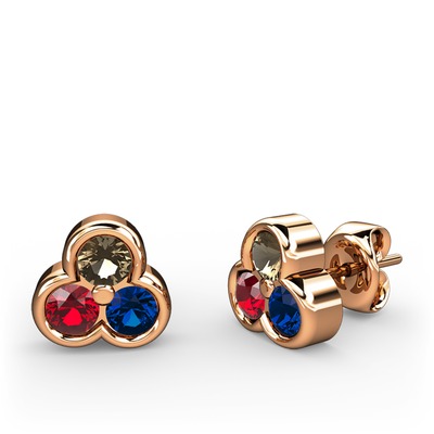 Dumanlı kuvars, garnet ve lab safir 925 ayar rose altın kaplama gümüş küpe