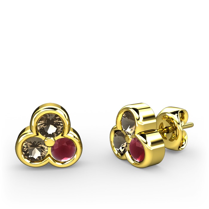 Dumanlı kuvars ve kök yakut 18 ayar altın küpe