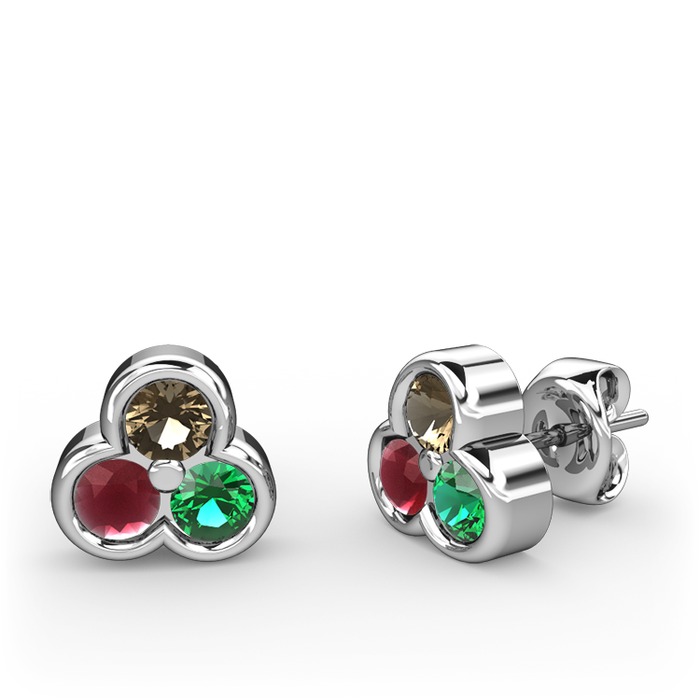Dumanlı kuvars, kök yakut ve yeşil kuvars 18 ayar beyaz altın küpe