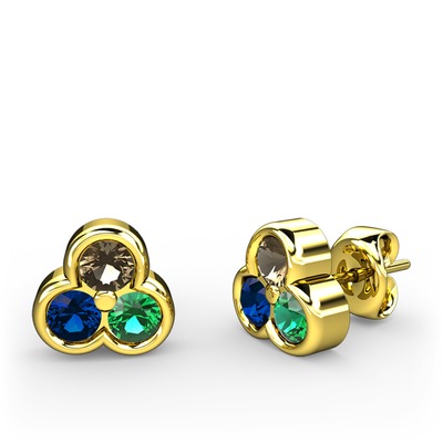 Dumanlı kuvars, lab safir ve yeşil kuvars 8 ayar altın küpe