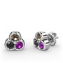 Dumanlı kuvars, siyah zirkon ve ametist 14 ayar beyaz altın küpe