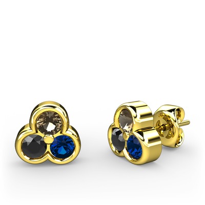 Dumanlı kuvars, siyah zirkon ve lab safir 925 ayar altın kaplama gümüş küpe