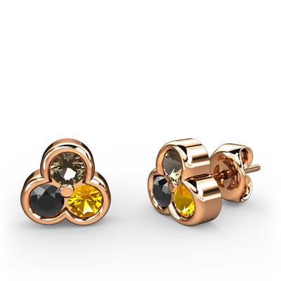 Dumanlı kuvars, siyah zirkon ve sitrin 14 ayar rose altın küpe
