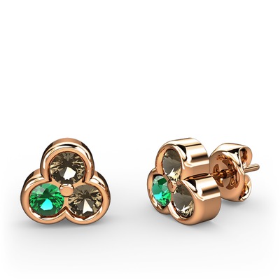 Dumanlı kuvars ve yeşil kuvars 8 ayar rose altın küpe