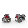Garnet, beyaz zirkon ve dumanlı kuvars 925 ayar siyah rodyum kaplama gümüş küpe