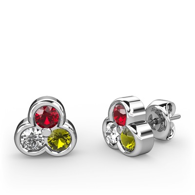 Garnet, beyaz zirkon ve peridot 18 ayar beyaz altın küpe