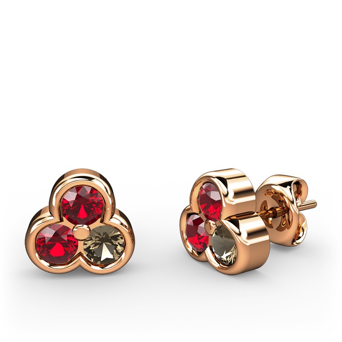 Garnet ve dumanlı kuvars 18 ayar rose altın küpe