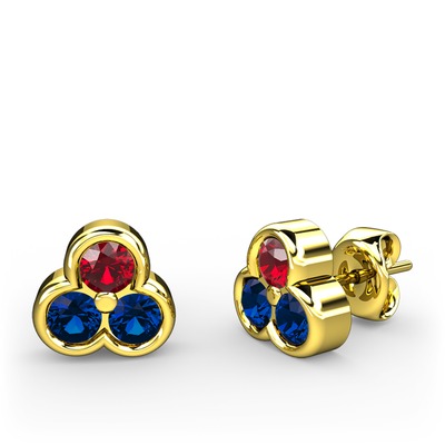 Garnet ve lab safir 14 ayar altın küpe