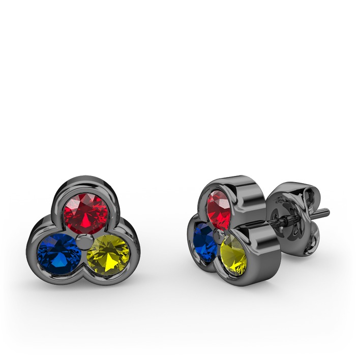 Garnet, lab safir ve peridot 925 ayar siyah rodyum kaplama gümüş küpe